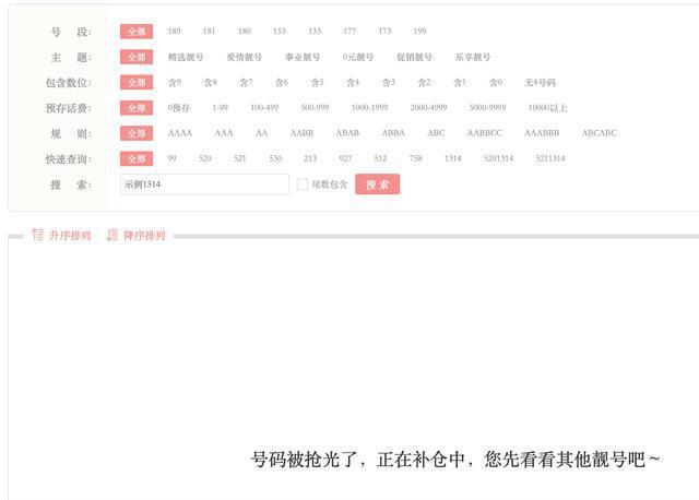 其中,联通、电信的选号界面均无法查询到靓号;而移动的选号界面仅有“168”作为号码中间段,其溢价同市面上最受欢迎的AAAA尾号相差甚远。
