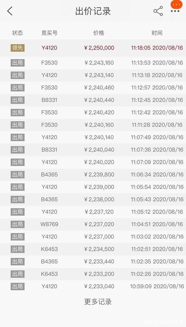 据悉,这件特殊拍品的原主人为北京朝阳法院的一起执行案件的被执行人,起拍价2000元,拍卖出价先后突破100万元、200万元,最后以225万元成交。在“88888”尾号的手机号码中,此次成交价格或创下新纪录,但仍不是手机靓号拍出价格最高案例。2017年,广西8 个“7”连号的手机号曾拍出391 万元。